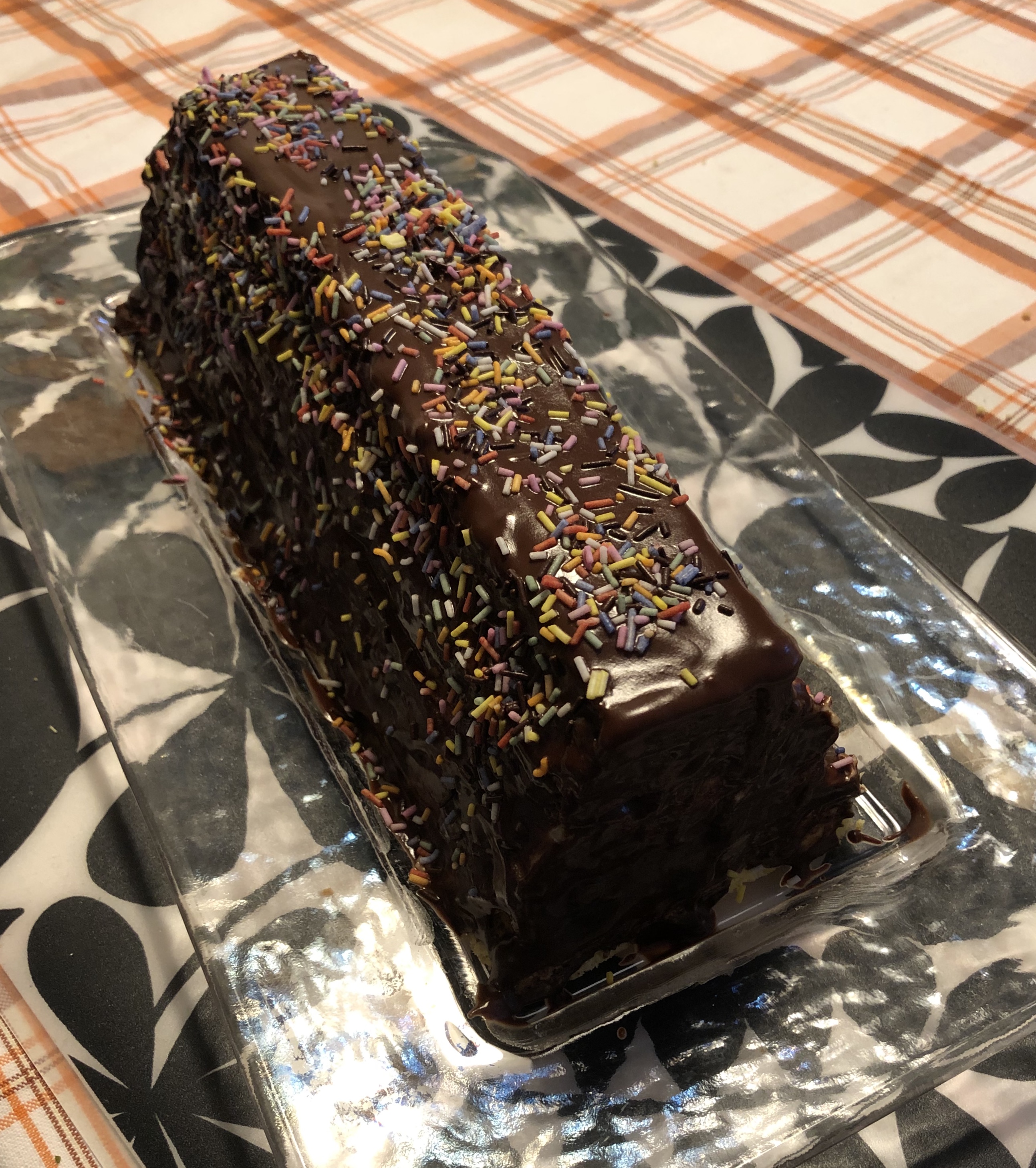 Die halbe Menge reicht für den Cake. 20% weniger Butter (200g statt 250g).