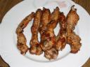 Die Flügel beim Gelenk einschneiden und aufbiegen (vgl. Fotos) und gut mit der Marinade einreiben, wenn möglich schon am Vortag.